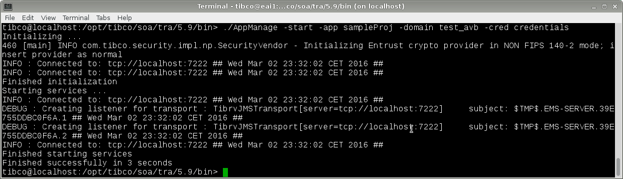 ./AppManage -start -app sampleProj -domain test_avb -cred credentials