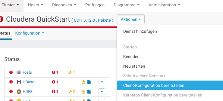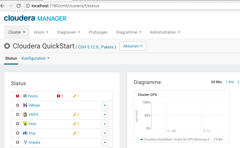 gesteuert werden. Nach der Startphase ist er dann unter http://localhost:7180/cmf/ verfügbar. Zugangsdaten sind Cloudera/Cloudera