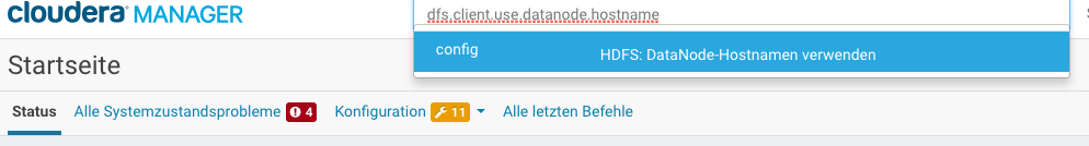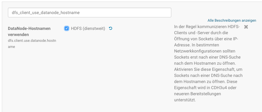 Suche des Parameters zur Konfiguration des Datanode Hostnames im Cloudera Manager