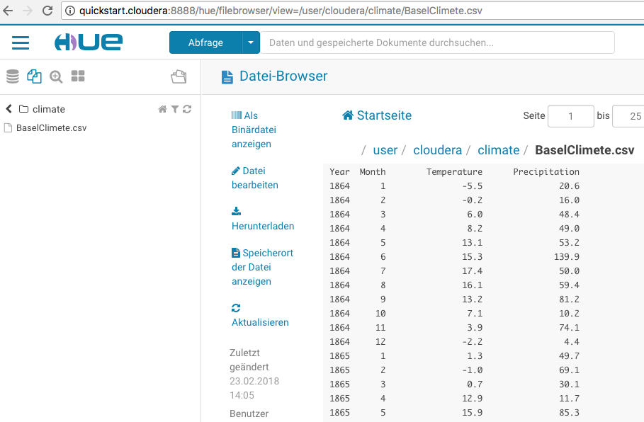 Im Browser können wir uns die hochgeladene Datei ansehen: [http://quickstart.cloudera:8888/hue]‚