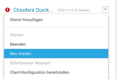 Nach der Konfigurationsänderung müssen wir die neue Konfiguration allen Diensten bereitstellen und dann alle Dienste im Cloudera Manager neustarten.